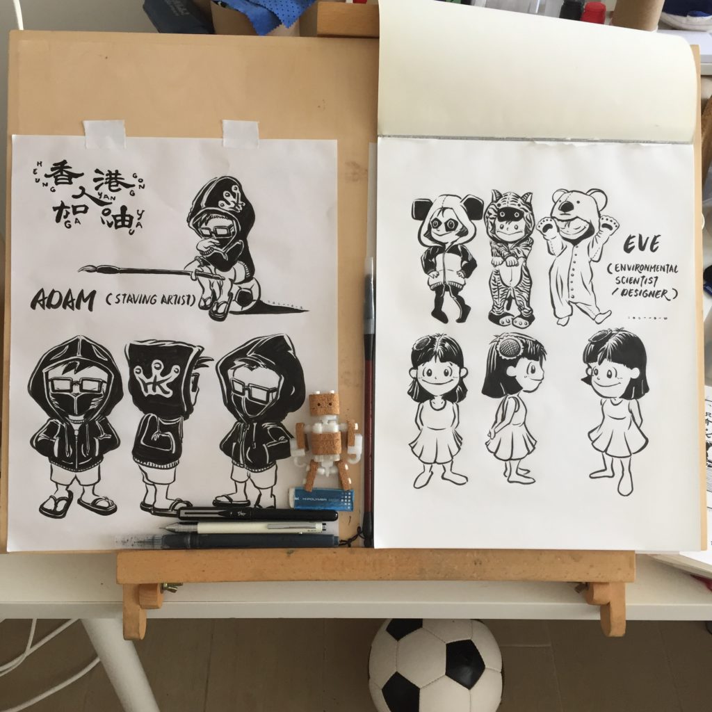 Learning from the LIONROCK experience, I was much better prepared this time around. I brought home from the studio my heavy table easel and other art supplies and turned the unexpected but welcoming holiday into a little art-cation. It proved rather productive as I managed to finish my weekly Chinese calligraphy homework while completing a couple of character sheets for my ongoing IG cartooning series.