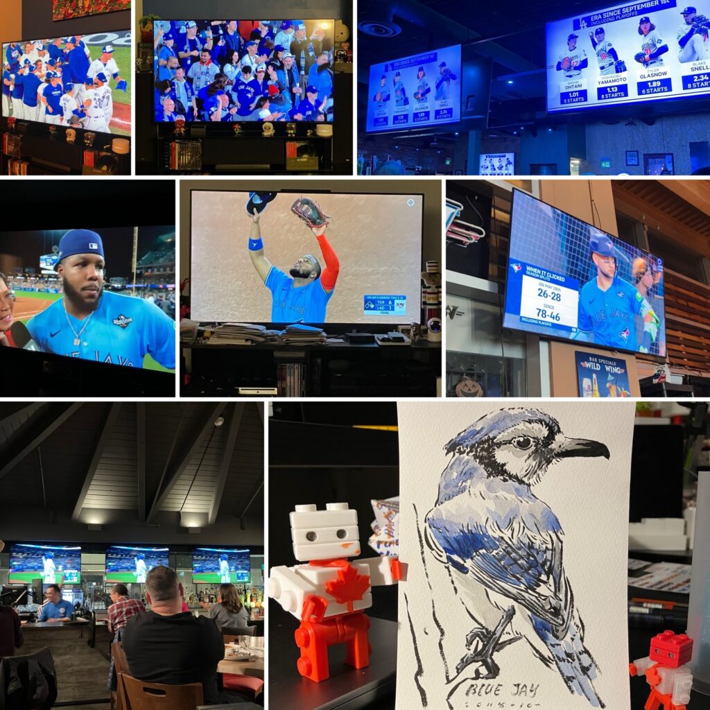 I only started watching the game for the past 10 games or so as my home team looked more and more like a worthy contender to winning the World Series. Without cable set up at home, I had to go out to catch the games in many consecutive evenings. I was invited to 3 different homes and visited 3 different bars, and was kicked out from one of them when the game continued past 14 innings past 1am. The Jays ended up losing the game at 18th inning.