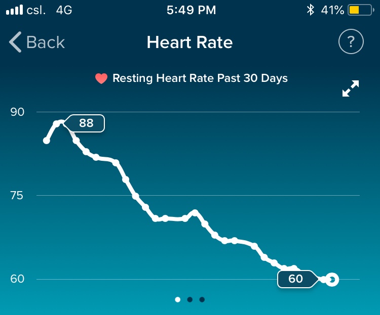 My resting heart rate continued to drop from 67 bpm to my normal 60 bpm in the past week, so I ended 2018 and starting 2019 with a healthy body.